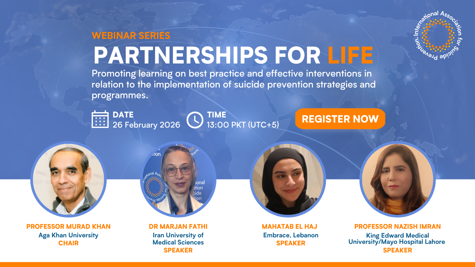 The IASP team is delighted to invite you to the next instalment of the Partnerships for Life Webinar Series, taking place virtually on Thursday, 26 February 2026.